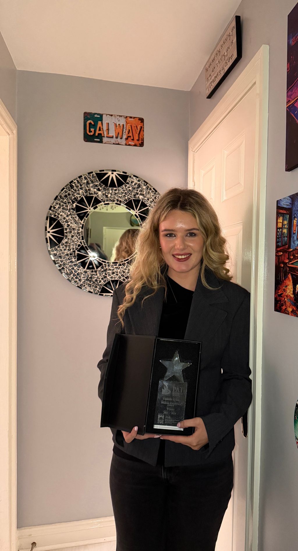 We are delighted to share that former student Caoimhe Keane has been awarded the Student Excellence Award 2025/26, accredited by PAT Business School in partnership with Technological University of the Shannon (TUS). This award recognises Caoimhe’s outstanding dedication and academic achievement in her studies at TUS. We are very proud of Caoimhe and wish her continued success in her final year and beyond. Well done, Caoimhe!