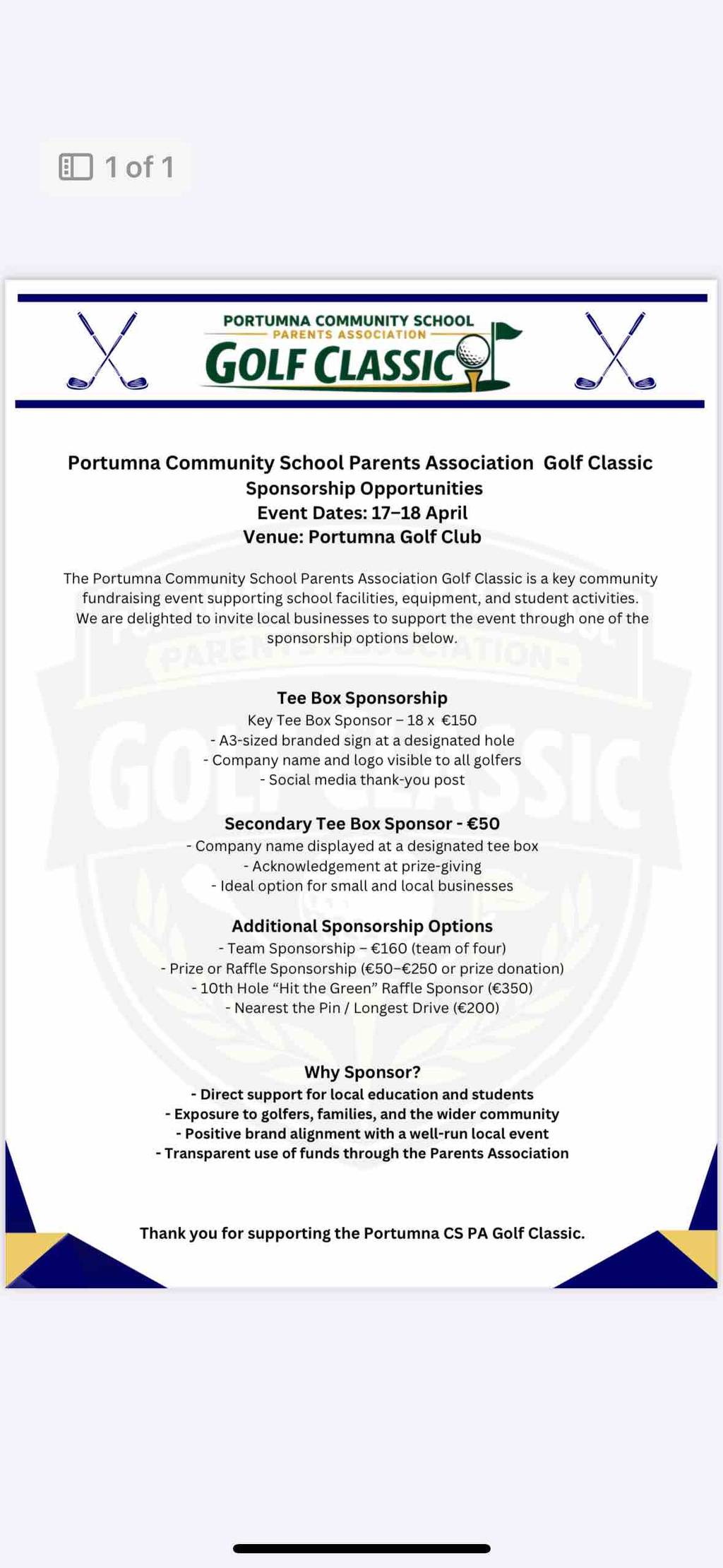 Please support our upcoming Parents Association Golf Classic- all information in the poster attached